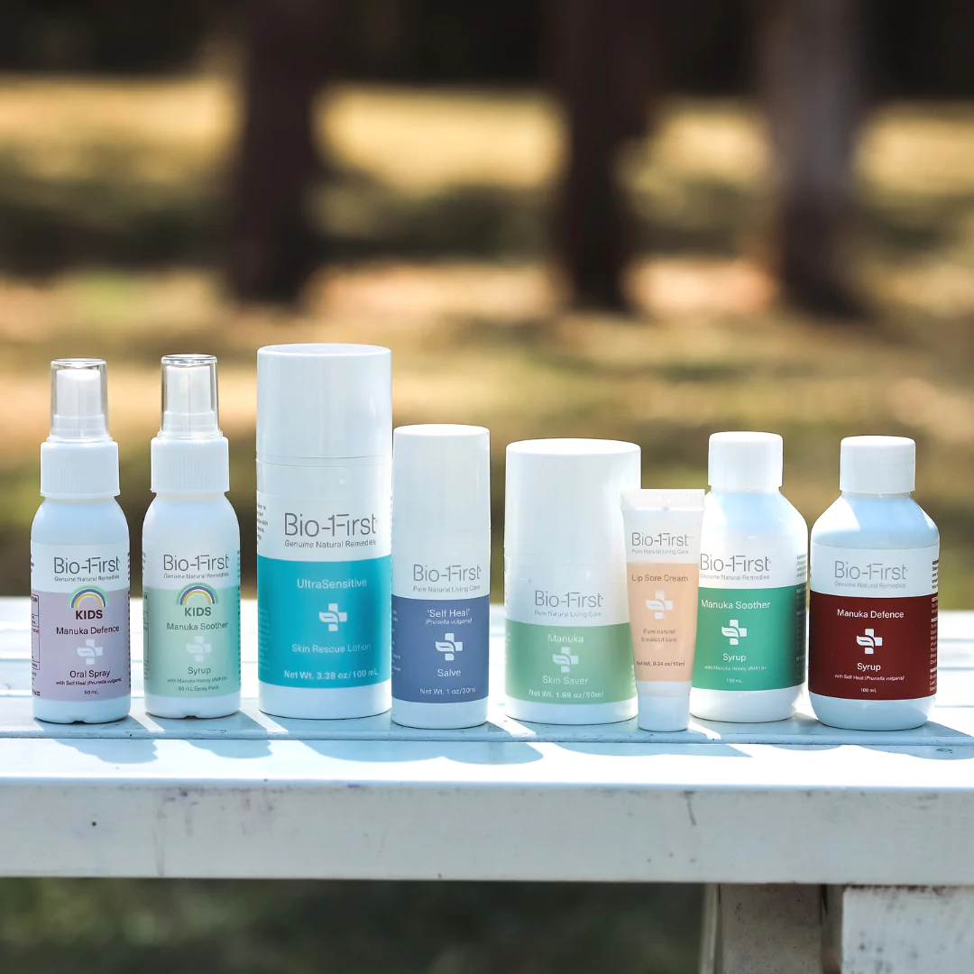Full of multi-award-winning essentials – become the family health hero you were born to be, and grab yours now. Included: 1x UltraSensitive Skin Rescue Lotion, 1x ‘Self Heal’ Salve, 1x Kids Manuka Soother Syrup, 1x Kids Manuka Defence Oral Spray.