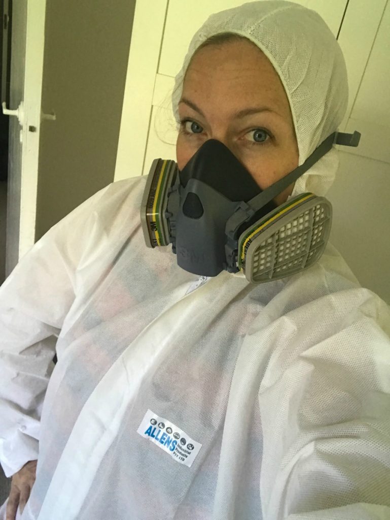 Me in my suit! Hilarious to look at but I’m so grateful for how it protected me as I worked through everything in the old place.