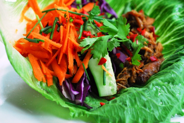 Tonight we had the chicken and I added steamed bok choy and broccoli. On Friday the leftover meat will become the protein for veggie + chicken lettuce cups like this below, and the bones will all be used towards the next batch of stock.